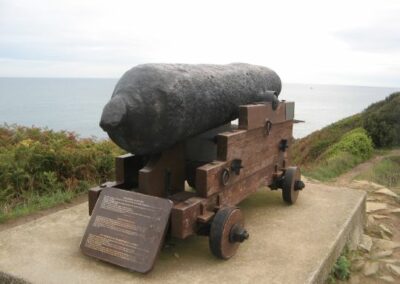 Là gros doute, au pied de la falaise un escalier on l’on devine une balise. Ce doit être le chemin. Sauf qu’il semble aboutir nulle part cet escalier. Nous optons par la poursuite du chemin le long du port. C’est la bonne option. Nous passons près du monument dédié aux évadés de France avant de rejoindre la plage de la Mare et le monument érigé à la mémoire de la frégate météorologique Laplace.