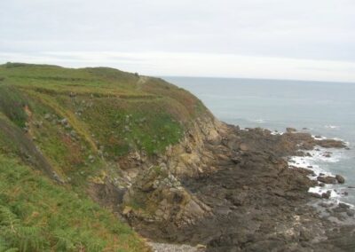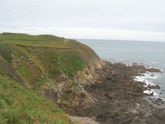 Arrivés sur la départementale, plus de balise ni trace du chemin. Nous choisissons de partir vers la côte où en longeant la falaise, nous finissons par rattraper le tracé officiel, mais nous avons fait un léger détour.