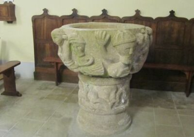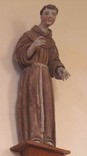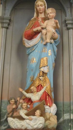 Après cette pause et avant de repartir, visite de l’église où 2 statues retiennent notre attention : St Antoine avec son air poupin et La Vierge avec une barque à ses pieds. Puis c’est le départ pour rejoindre la côte que nous longeons avant de rentrer dans les terres jusqu’à un groupe de maisons.