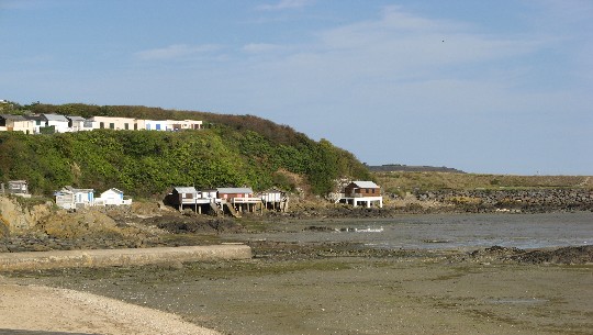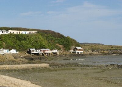 Un peu d’hésitation pour rejoindre un secteur de maisons/cabanes de bord de mer plus ou moins décorées que nous traversons en remontant vers le haut de la falaise pour contourner la tour de Cesson et se retrouver face au port du Légué dans l’estuaire de St Brieuc.